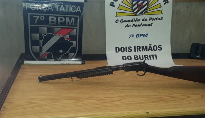 Aquidauana (MS) – Por volta das 06 horas da manhã de hoje (14.12), uma ação conjunta entre as equipes de Radiopatrulha e Força Tática do 7º Batalhão de Polícia Militar, resultou na apreensão de uma arma de fogo em uma área indígena no município