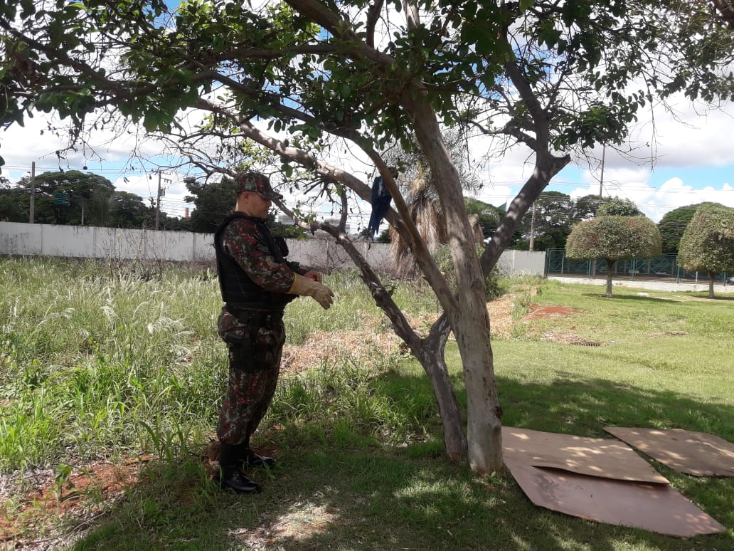 Campo Grande – A Polícia Militar Ambiental de Campo Grande foi acionada hoje (13) às 9h30 por um homem de 47 anos, informando de que haveria uma ave da espécie arara-canindé (Ara ararauna), que estaria em uma árvore aparentemente ferida no pátio de um