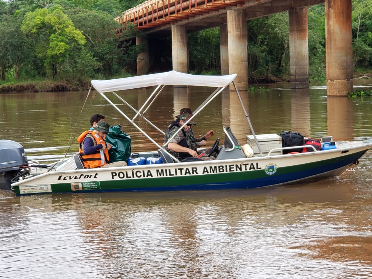 Campo Grande (MS) – Equipes de Policiais Militares Ambientais de Coxim e Imasul realizam fiscalização preventiva, na operação Ictionfauna nos rios Coxim, Taquari e afluentes para monitoramento de cardumes e prevenir a pesca predatória. A equipe que