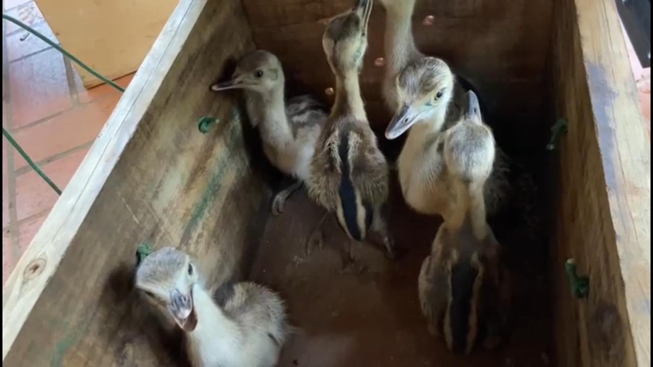Campo Grande (MS) – Policiais Militares Ambientais de Campo Grande receberam uma ligação de uma jovem de 19 anos ontem (29), que informava ter aparecido no quintal de sua residência seis filhotes de animal silvestre da espécie Rhea ameriana (ema). Os