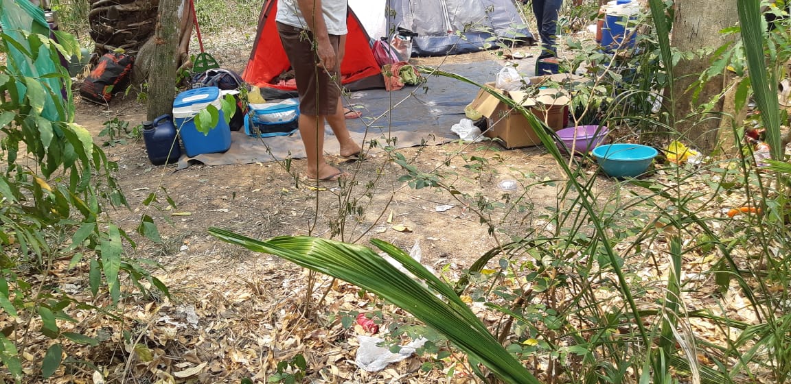Campo Grande (MS) – Durante fiscalização preventiva à pesca predatória no rio Miranda na operação Ictiofauna, Policiais Militares Ambientais de Miranda localizaram hoje (11) pela manhã um acampamento ilegal para a pesca, no município, na região