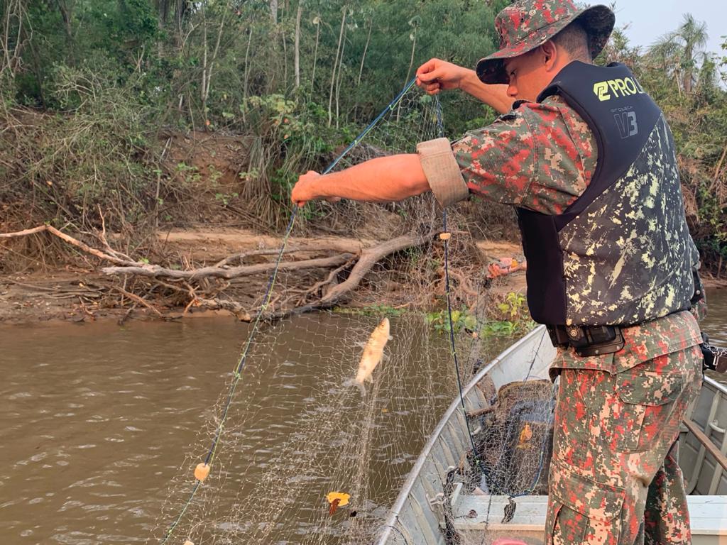 Campo Grande (MS) – Uma das maiores preocupações da PMA na prevenção à pesca predatória é a retirada dos rios de petrechos de pesca proibidos que são armados por infratores, principalmente as redes de pesca, os espinheis, anzóis de galho, devido ao
