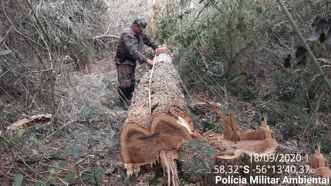 Campo Grande (MS) – Policiais Militares Ambientais de Jardim, que trabalham nas propriedades rurais na operação Focus em prevenção aos incêndios, realizavam fiscalização em uma fazenda no município, a 20 km da cidade e encontraram árvores de