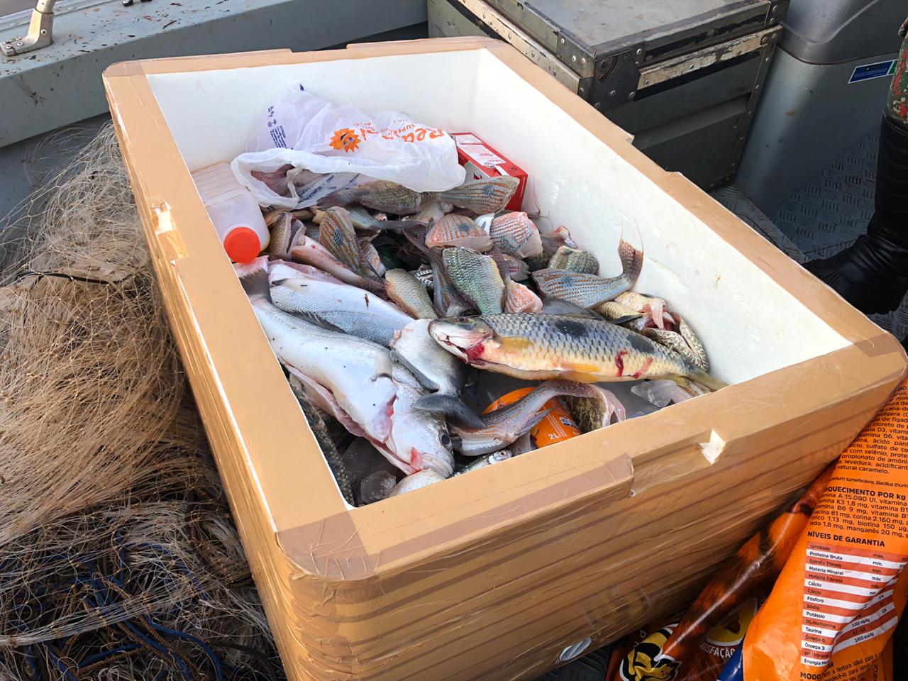 Campo Grande (MS) – Durante patrulhamento fluvial no rio Sucuriú, no município Chapadão do Sul ontem (7), na operação Big Fish II, Policiais Militares Ambientais de Cassilândia e fiscais do Imasul autuaram dois pescadores por pesca ilegal, além de