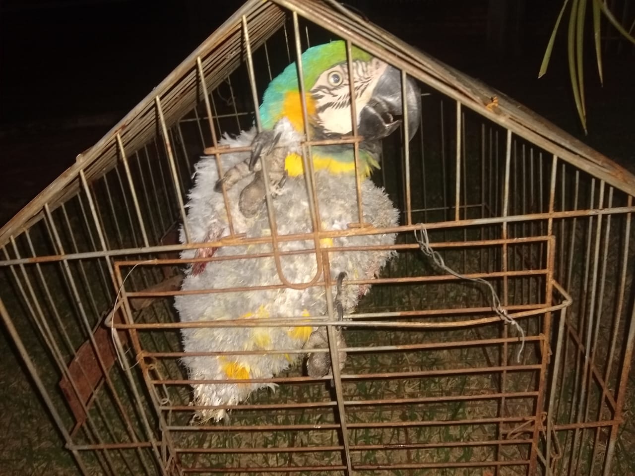 Campo Grande (MS) – Policiais Militares Ambientais de Jardim foram acionados por moradores do centro da cidade de Nioaque hoje (19) às 16h30, para atender a uma ocorrência relativa a um animal silvestre da espécie Ara ararauna (Arara-canindé) que