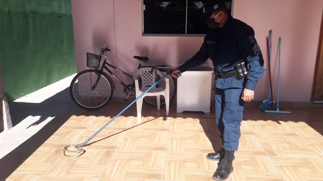 Campo Grande (MS) – Policiais Militares Ambientais de Coxim capturaram hoje (22) uma serpente do gênero Bothrops (Jararaca), na área central da cidade. Um morador, de 48 anos, telefonou à PMA informando sobre a serpente que aparentava ser