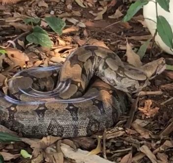 Campo Grande (MS) – Policiais Militares Ambientais de Campo Grande capturaram uma serpente da espécie Boa constrictor (jiboia) ontem (7). Funcionários do Aquário do Pantanal telefonaram para a PMA, informando sobre a presença da serpente em alguns