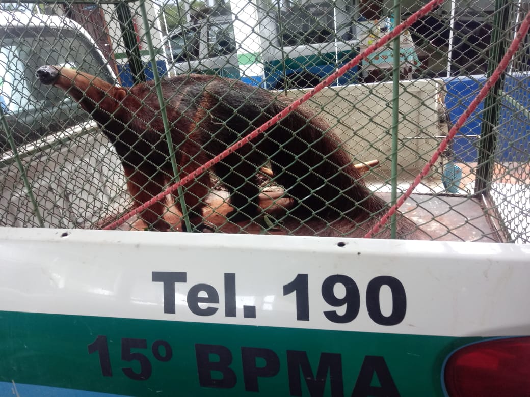 Campo Grande (MS) – Policiais Militares Ambientais de Miranda resgataram hoje (31) às 9h30, um animal silvestre da espécie Myrmecophaga tridactyla (Tamanduá-bandeira) em uma aldeia indígena, localizada nas proximidades da cidade. Os indígenas da