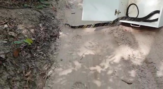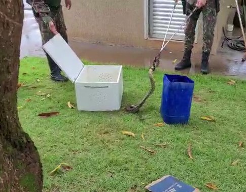 Campo Grande (MS) – Policiais Militares Ambientais de Coxim capturaram há pouco, às 8h40 de hoje (6), uma serpente da espécie Spilotes pullatus (caninana) que estava no Instituto Federal (IFMS) da cidade. Um funcionário do Instituto acionou a PMA,