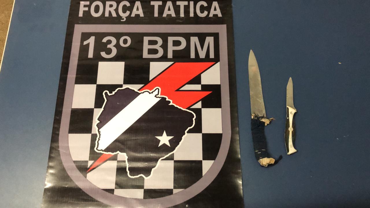 Paranaíba (MS) – Nessa quinta (07/01), por volta das 13 horas, policiais militares da equipe de Força Tática do 13º Batalhão realizaram a prisão de um homem que brigava na rua e que armado com facas tentou resistir à intervenção policial. Veja