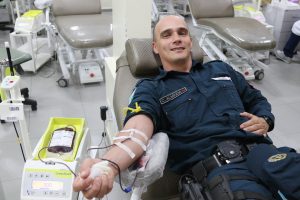 Policiais militares atendem com frequência pedidos de doação sanguínea, nem sempre fardados, mas hoje tinham como missão evidenciar o incentivo à doação que continuará durante todo o mês de junho.