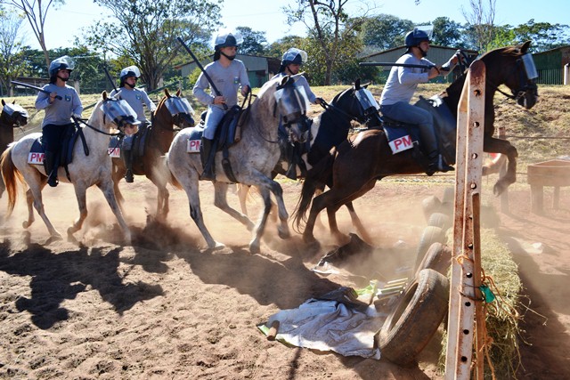 Campo Grande (MS) – A Polícia Militar do Estado de Mato Grosso do Sul através do 1° Esquadrão Independente de Policia Militar Montada (Cavalaria) promoveu na manhã de hoje (27/07) um treinamento de Choque Montado para os PMs da referida unidade. O
