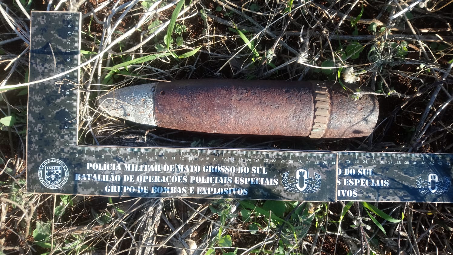 Campo Grande (MS)— Na tarde de ontem (29), na cidade de Sidrolândia, um morador localizou em um terreno em frente à sua residência um objeto com aparência de artefato explosivo. Diante disso, a equipe policial da cidade foi acionada isolando o local.