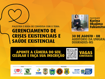 Dourados (MS) – No próximo dia 30 de agosto, sexta-feira, o Centro de Atenção Biopsicossocial (CABS) da Secretaria de Estado de Justiça e Segurança Pública (Sejusp) dará início à programação do “Setembro Amarelo” em grande estilo. A
