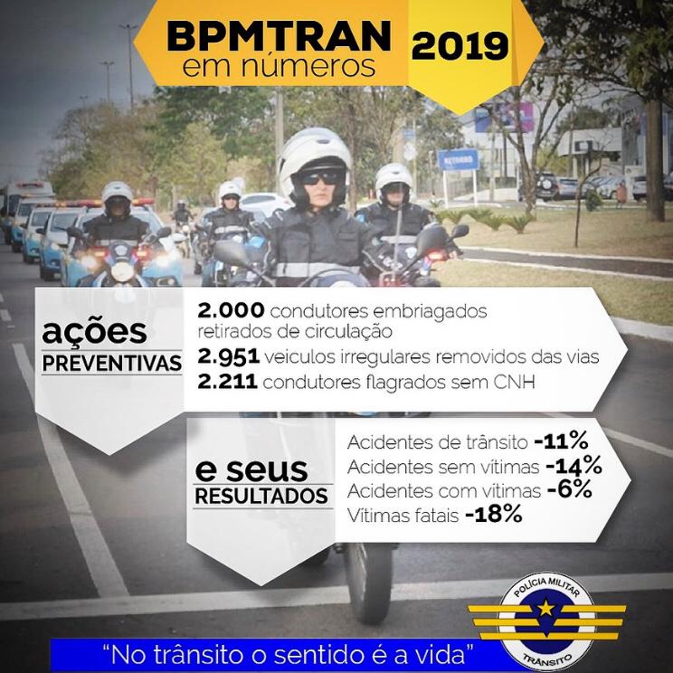 Campo Grande (MS) – O Batalhão de Polícia Militar de Trânsito – BPMTran divulga suas ações preventivas de trânsito e seus resultados referente ao ano de 2019. Segundo o comandante da unidade, Ten Coronel PM Franco Alan, somente com