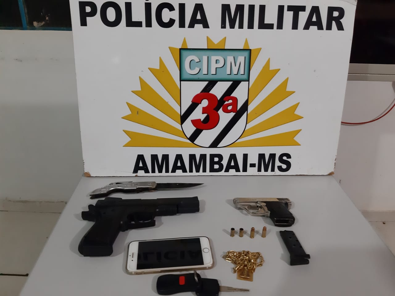 3ª CIPM Amambai – Na noite desta quinta-feira (24) uma equipe de Rádio Patrulha da Polícia Militar de Amambai prendeu um homem de 39 anos e apreendeu um adolescente de 15 anos quando tentavam roubar a caminhonete da residência. A equipe foi acionada