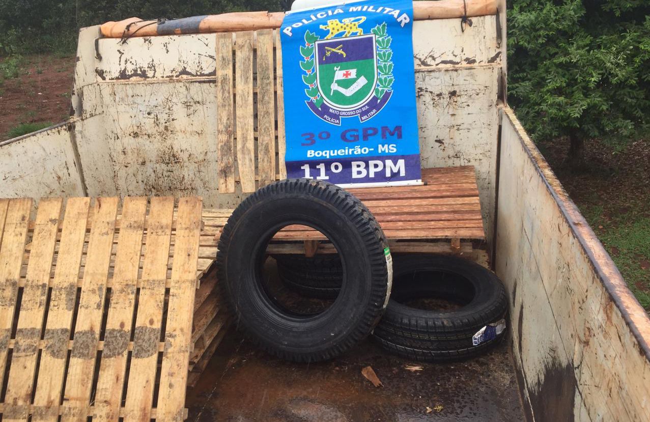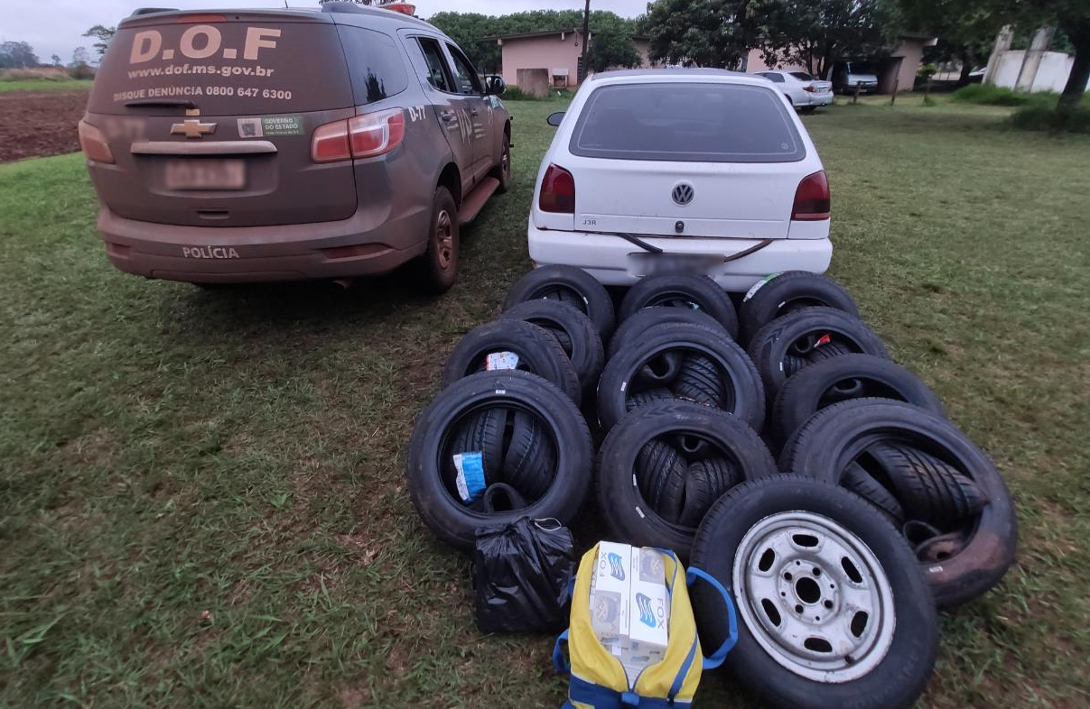 Ponta Porã, 21 de outubro – Policiais do Departamento de Operações de Fronteira (DOF) apreenderam, na tarde de ontem (segunda-feira), um veículo VW Gol de cor branca carregado com 48 pneus e 20 pacotes de cigarros contrabandeados do Paraguai. A