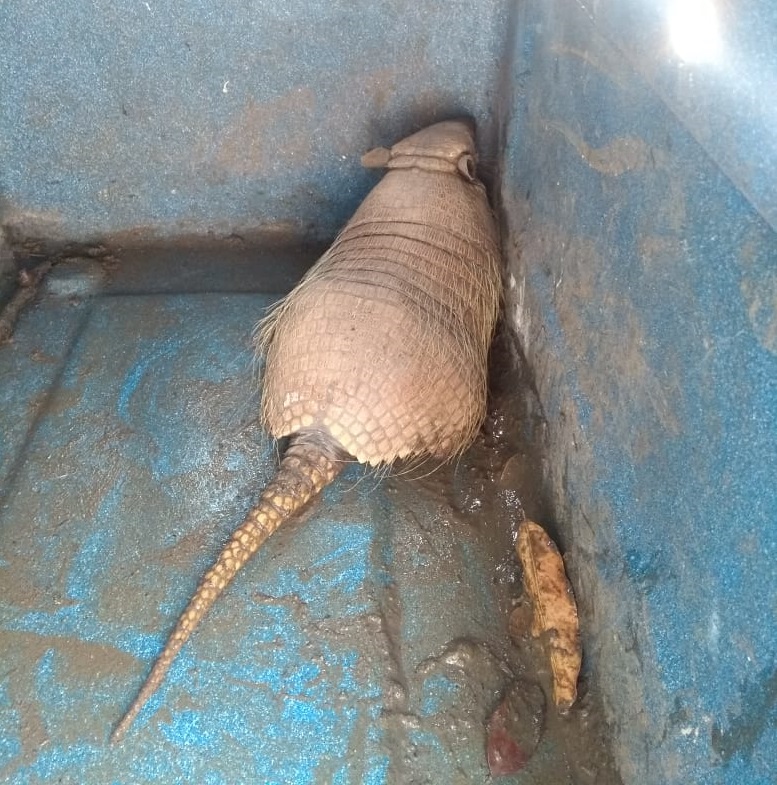 Campo Grande (MS) – Policiais Militares Ambientais de Coxim foram acionados por uma funcionária da Câmara Municipal da cidade hoje (21), no início da manhã, devido a um animal silvestre da espécie Euphractus sexcinctus (tatu-peba), que estava no