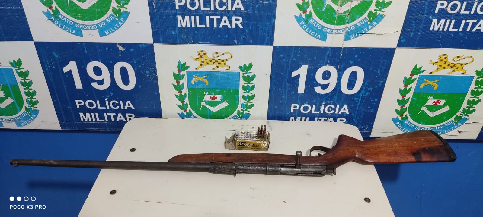 Aquidauana (MS) – Policiais do 7º Batalhão de Polícia Militar durante o atendimento de uma denúncia de “racha” na BR-419, prenderam um homem de 46 anos por posse irregular de arma de fogo. Durante a averiguação da denúncia de que motociclistas