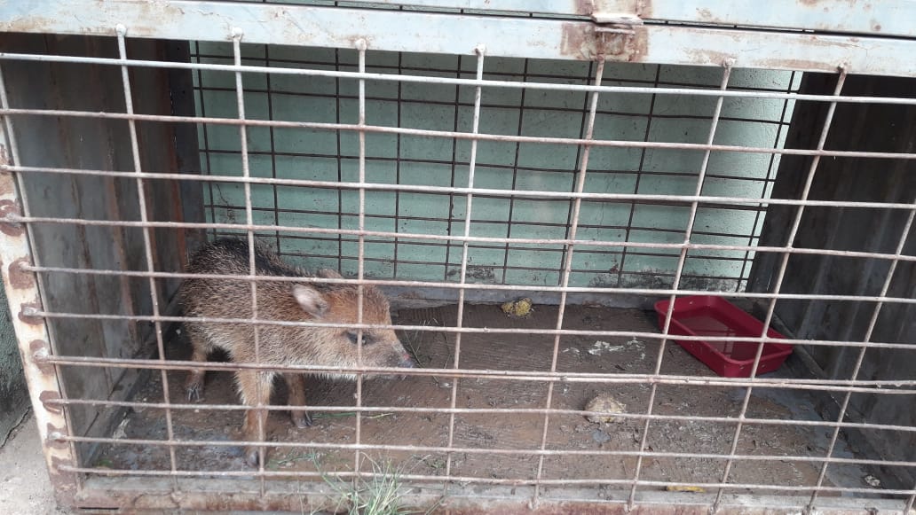 Campo Grande (MS) – Policiais Militares Ambientais de Porto Murtinho receberam no quartel um filhote de animal silvestre da espécie queixada (Tayassu pecari) ferido. O animal foi entregue por uma mulher que o recolhera ontem (8) à margem da rodovia BR 267