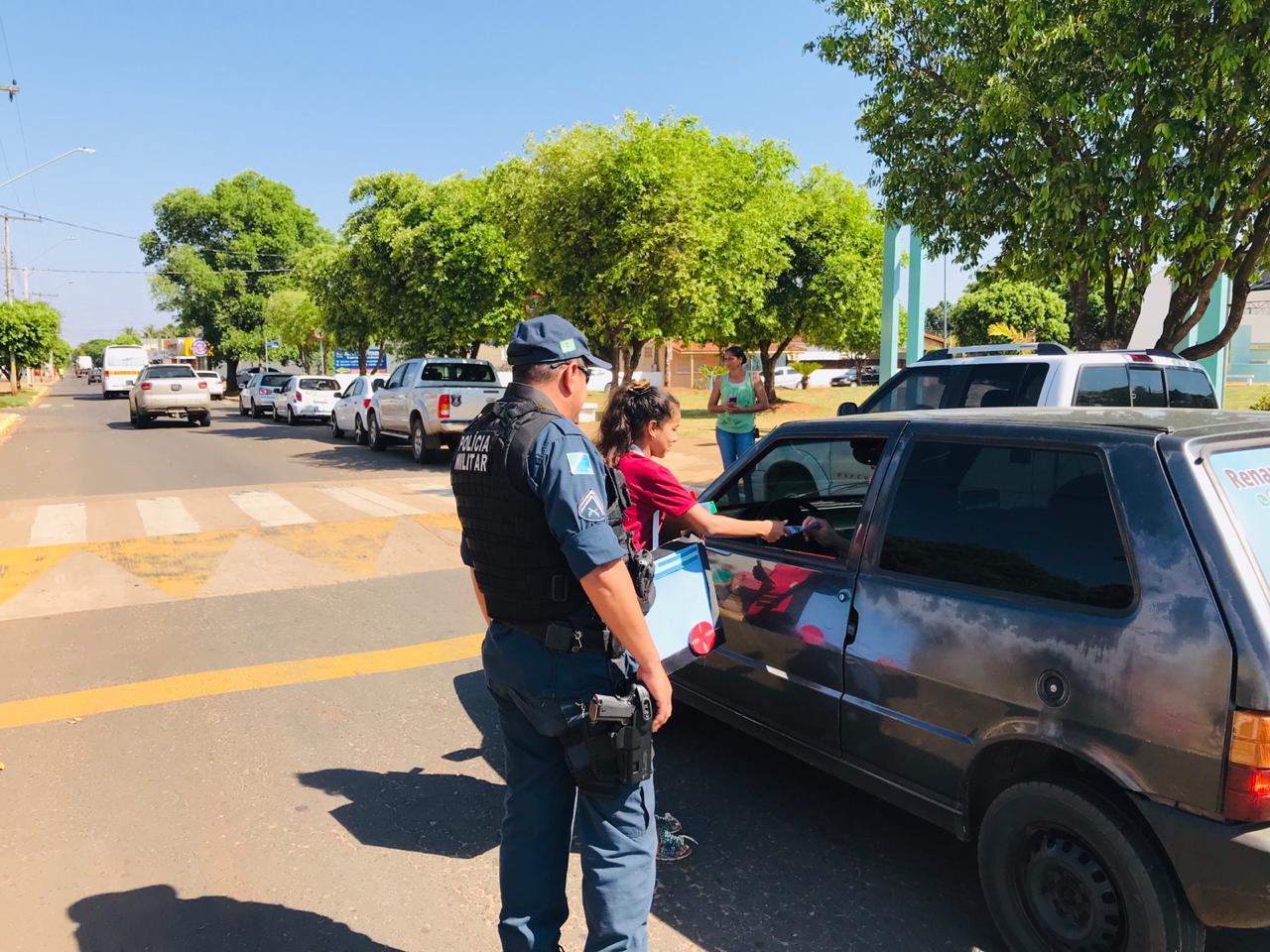 Santa Rita do Pardo (MS) – Na manhã desta terça-feira (01/10), a guarnição da Polícia Militar em Santa Rita do Pardo participou de uma blitz educativa com panfletagem em alusão a Semana Nacional do Trânsito. A ação foi coordenada pela