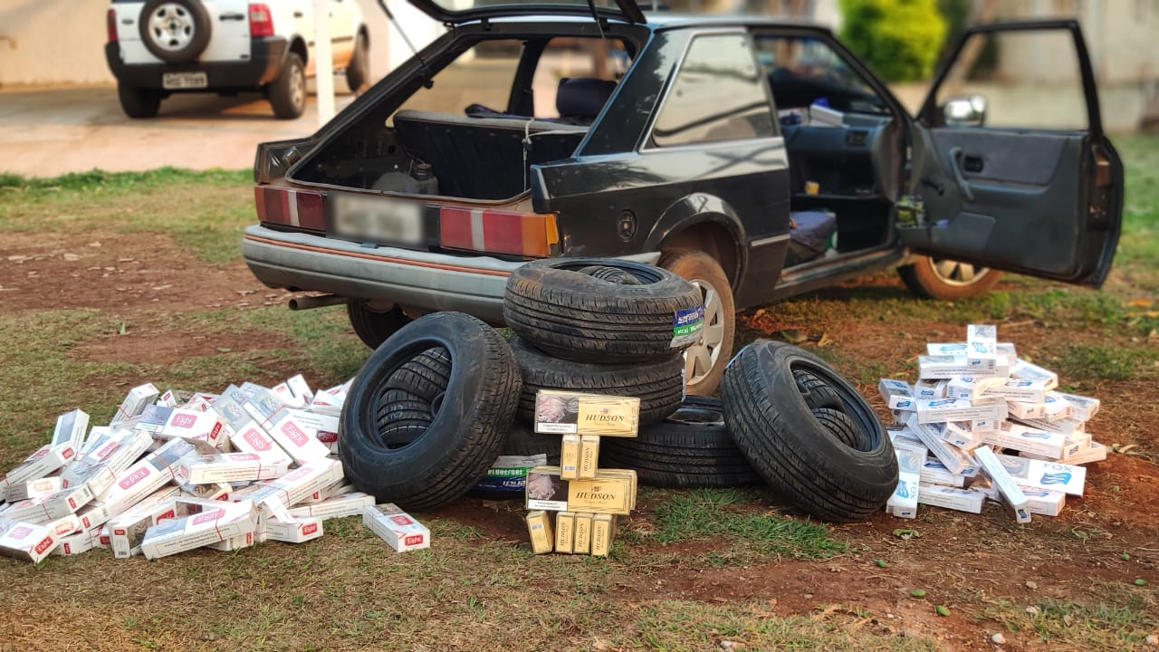 Maracaju, 11 de setembro – Policiais do Departamento de Operações de Fronteira (DOF) apreenderam, na tarde de quarta-feira, um veículo Ford Escort carregado com 162 pacotes de cigarros e 31 pneus contrabandeados do Paraguai e sem a documentação de