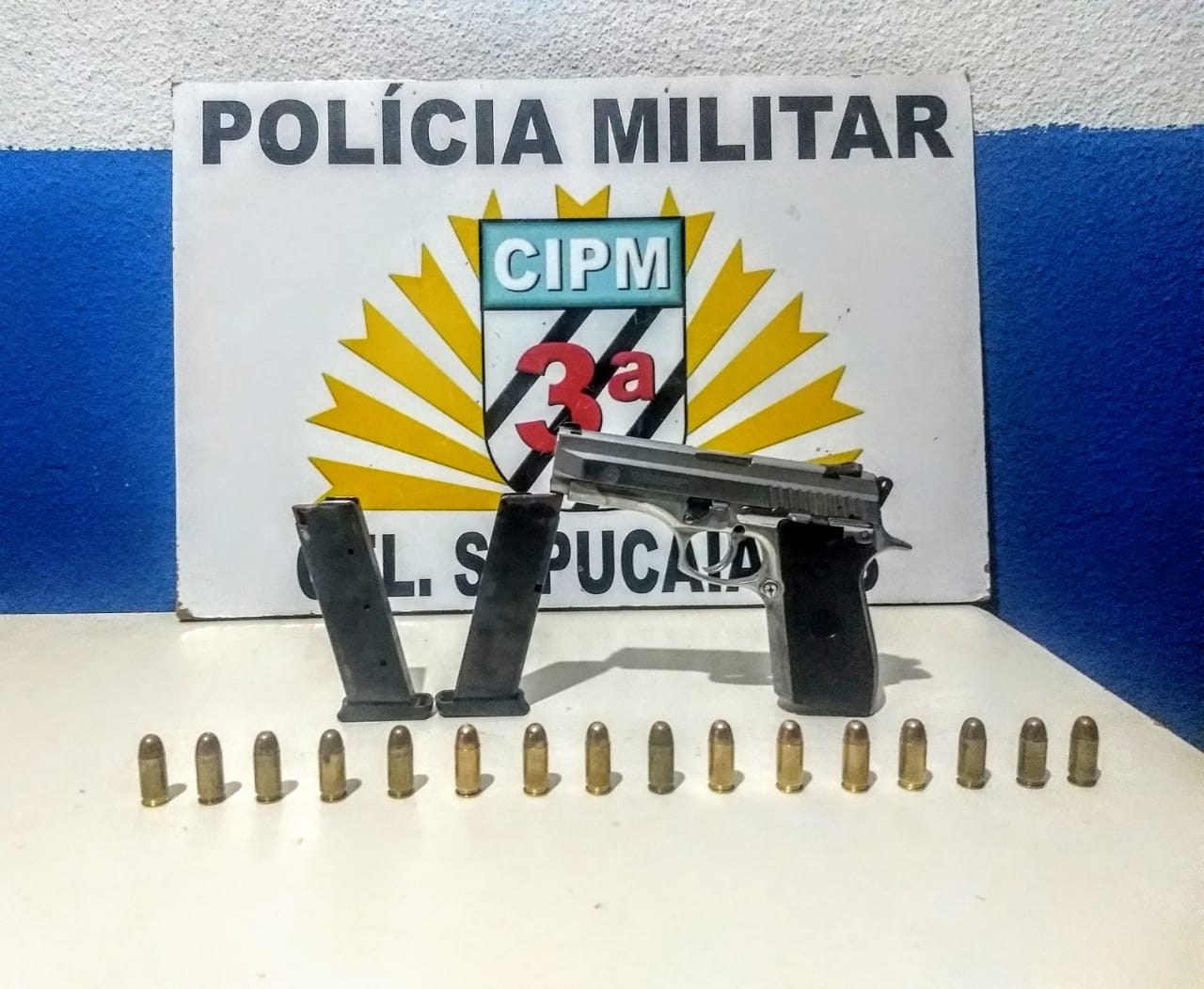 3ª CIPM Amambai (MS) – No início da madrugada deste domingo (08), uma equipe de Rádio Patrulha da Polícia Militar de Coronel Sapucaia prendeu um homem que era desfavorecido por um mandado de prisão, portava uma pistola irregular e dirigia um veículo