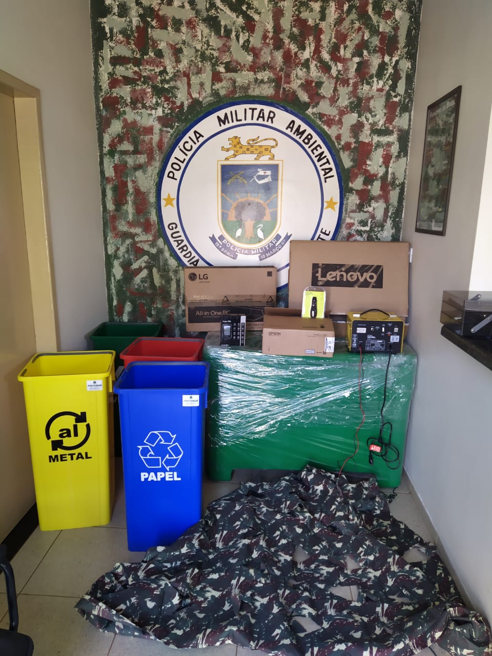 Campo Grande (MS) – A Polícia Militar Ambiental de Mundo Novo recebeu da Promotoria de Justiça da Comarca de Eldorado um computador marca Lenovo, um GPS marca Garmin Oregon 750, um projetor Epson, um apresentador de slides, uma rede de camuflagem para