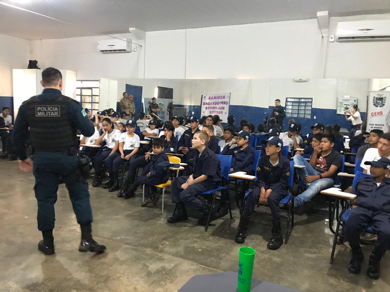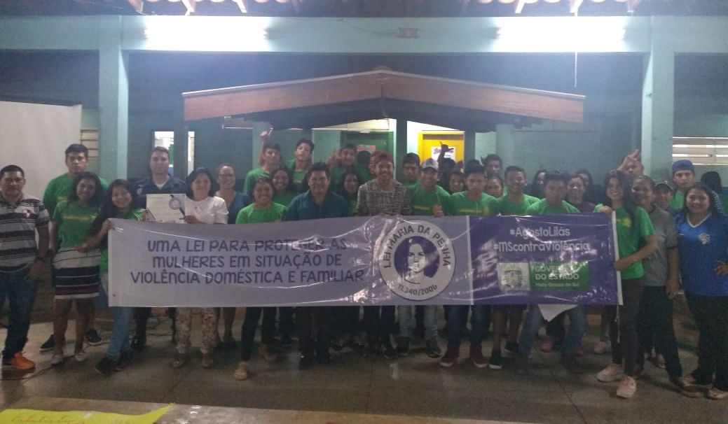 Jardim (MS) – Na última semana, o cabo PM Ivan Renato Gabriel dos Santos ministrou uma palestra alusiva à Campanha “Agosto Lilás 2019”, na Escola Indígena Angelina Vicente, na Aldeia Brejão. Foram abordados diversos temas, dentre os quais: a Lei