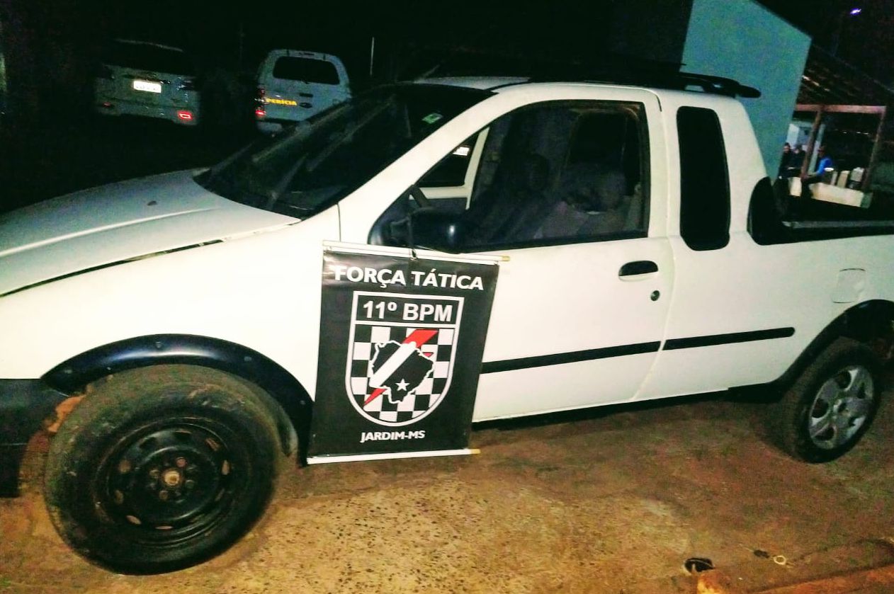 Jardim (MS) – Às 21h40 de sábado (24), uma guarnição de serviço da Polícia Militar em Jardim realizava rondas pela rua Rondonópolis, quando percebeu que o condutor de um veículo Fiat Strada, que trafegava logo a frente e no mesmo sentido de
