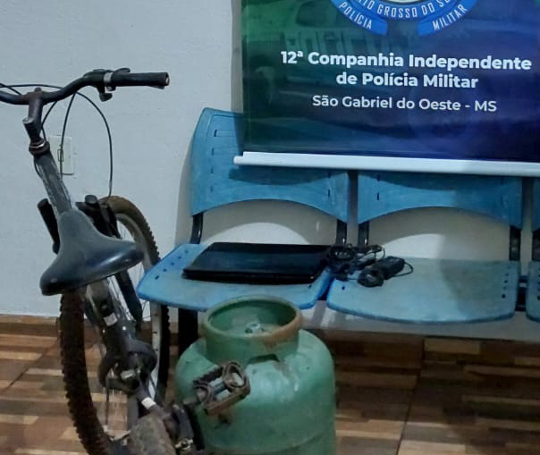 São Gabriel do Oeste (MS) – Na data de ontem (17/04), a Polícia Militar de São Gabriel do Oeste foi acionada, pois havia um indivíduo de camiseta verde em uma bicicleta saindo de um terreno baldio carregando um botijão de gás e um notebook. Ao