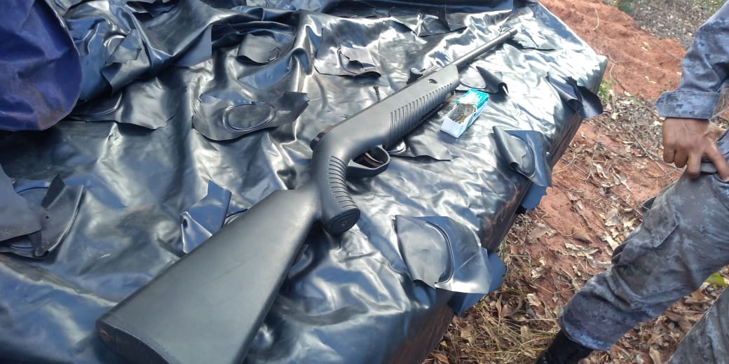 Três Lagoas (MS) – Na tarde de ontem (12), por volta 14h00, policiais militares da Força Tática do 2° Batalhão de Polícia Militar, encontraram uma arma tipo espingarda sem marca de ar comprimido adaptada para o calibre 22 com 09 cartuchos intactos.