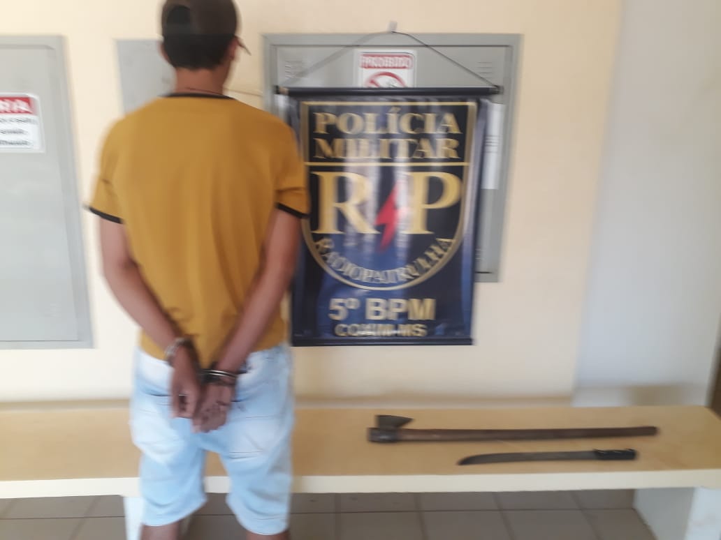 Coxim: Na manhã de hoje (29/07), os policiais militares de Coxim, prenderam um jovem de 23 anos por dano e ameaça. A guarnição de Rádio Patrulha foi acionada via 190 informando que na Rua João Feliciano Bezerra no Bairro Villa Bela havia um jovem muito