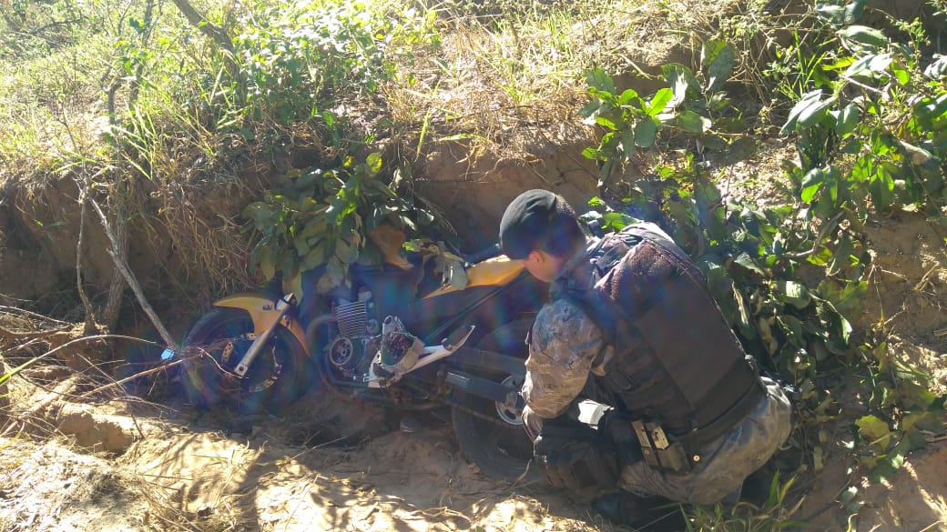 Campo Grande (MS)- Policiais do BOPE, durante patrulhamento em Campo Grande ontem (09), se depararam com uma motocicleta aparentemente abandonada e com a chave no contato nas mediações da vila São Jorge da Lagoa, ao checarem a placa foi constatado produto