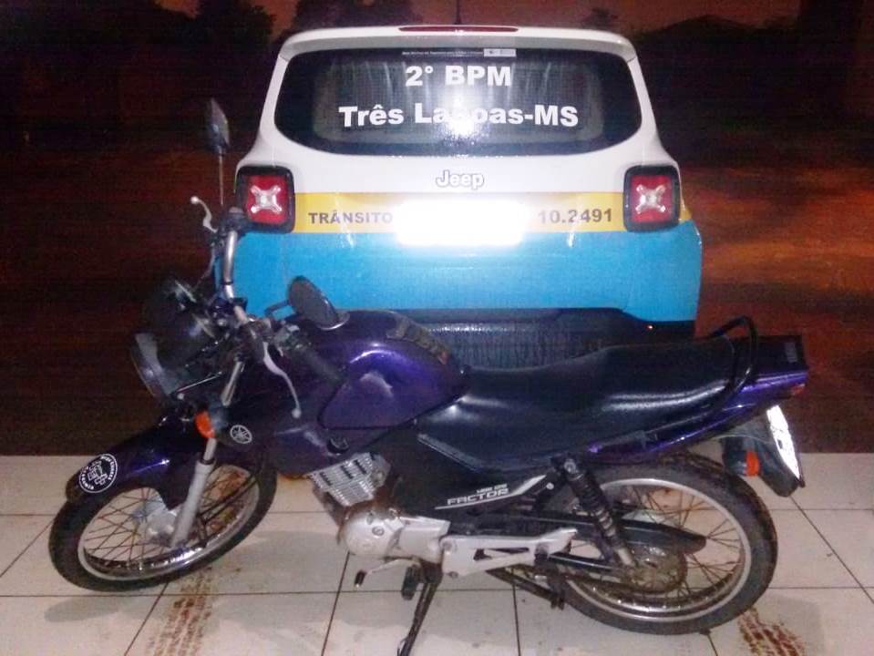 Três Lagoas (MS) – Ontem (04), por volta das 18h00, policiais militares da Radiopatrulha do 2°Batalhão de Polícia Militar, recuperaram uma motocicleta furtada entre os Residenciais Novo Oeste e Orestinho. Durante o patrulhamento preventivo nos bairros