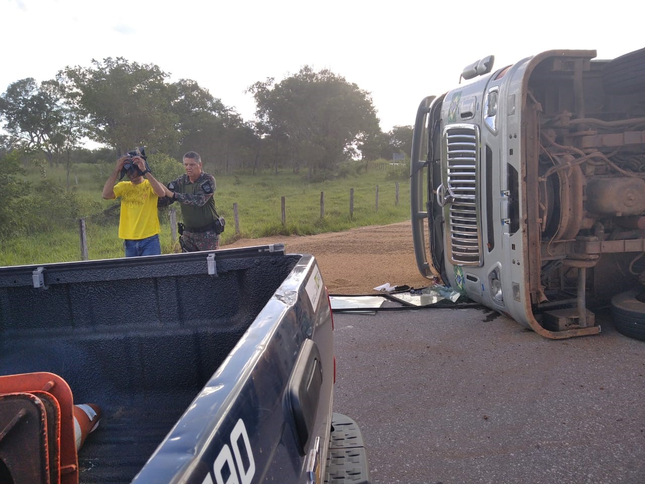 Policiais Militares Ambientais de Batayporã realizavam fiscalização ontem (11) no município de Bodoquena e, quando passavam pela rotatória da rodovia MS 339, a 4 km do centro da cidade, avistaram uma carreta tombada com grande quantidade de soja
