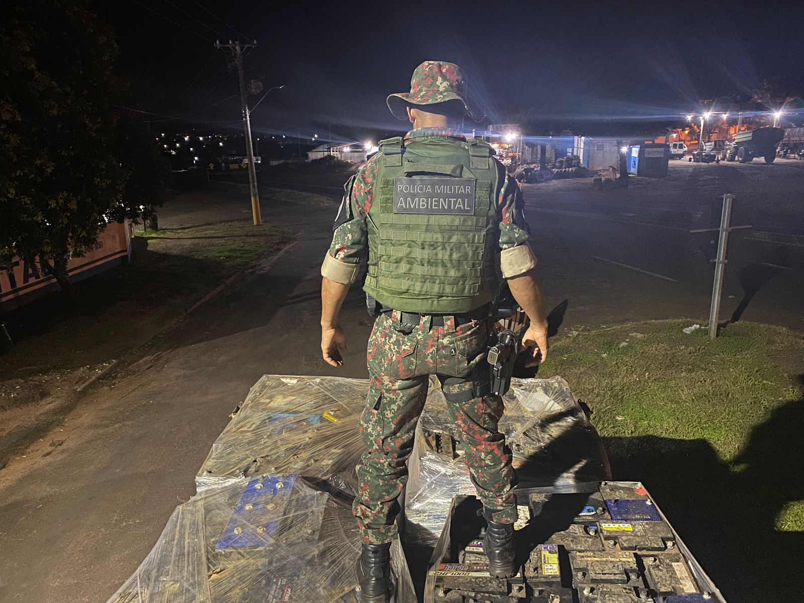 Campo Grande (MS) – Durante fiscalização ambiental em bloqueio na rodovia MS 386, no entroncamento com a rodovia MS 180 no município de Japorã, Policiais Militares Ambientais de Mundo Novo apreenderam ontem (11) à noite, um veículo Tractor Scania, com