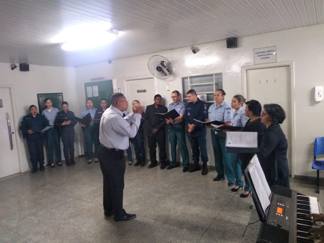 Na manhã desta quinta-feira (06/06), o Coral da PMMS realizou uma homenagem aos policiais militares que estavam realizando inspeção de saúde com a finalidade de serem transferidos para a reserva remunerada. O evento ocorreu na Policlínica da Polícia