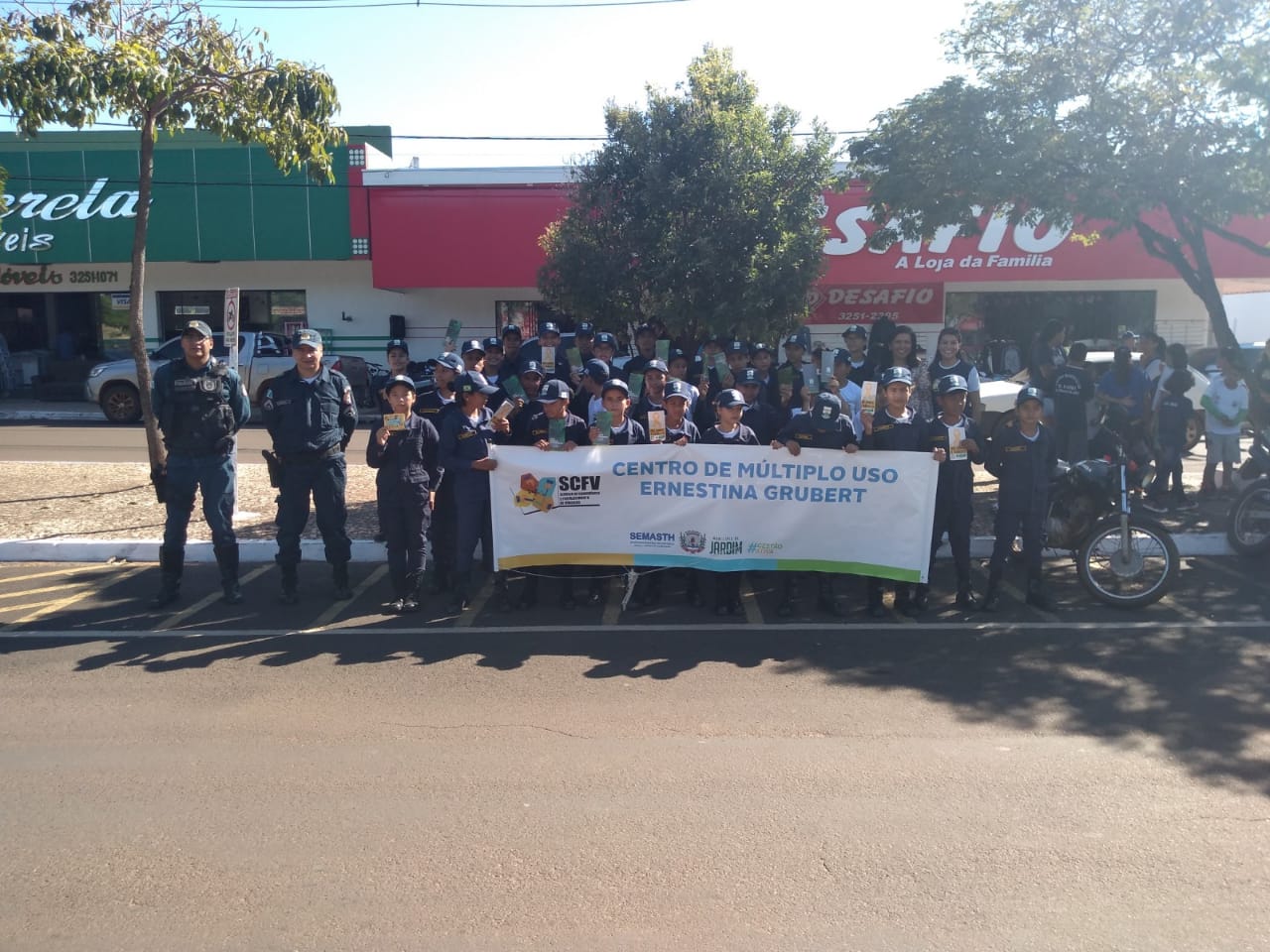 Jardim (MS) – Na manhã de ontem (27), a equipe de Trânsito da Polícia Militar em Jardim apoiou os alunos do Projeto Patrulha Mirim, durante uma Blitz Educativa alusiva ao Movimento Maio Amarelo 2019. A ação foi realizada em parceria com a Assistência