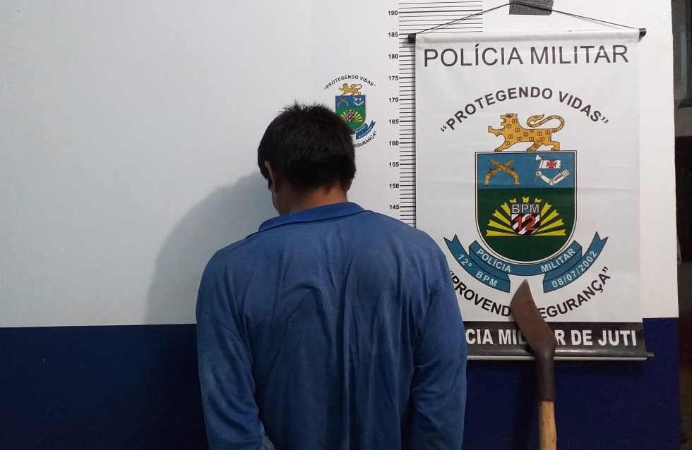 Juti (MS) – Na tarde de sábado (25/05), por volta das 15h30, policiais militares prenderam um homem de 37 (trinta e sete) anos, por lesão corporal. A arma foi apreendida e a vítima, um senhor de 52 (cinquenta e dois) anos, foi encaminhado ao Hospital
