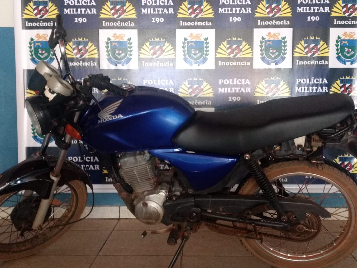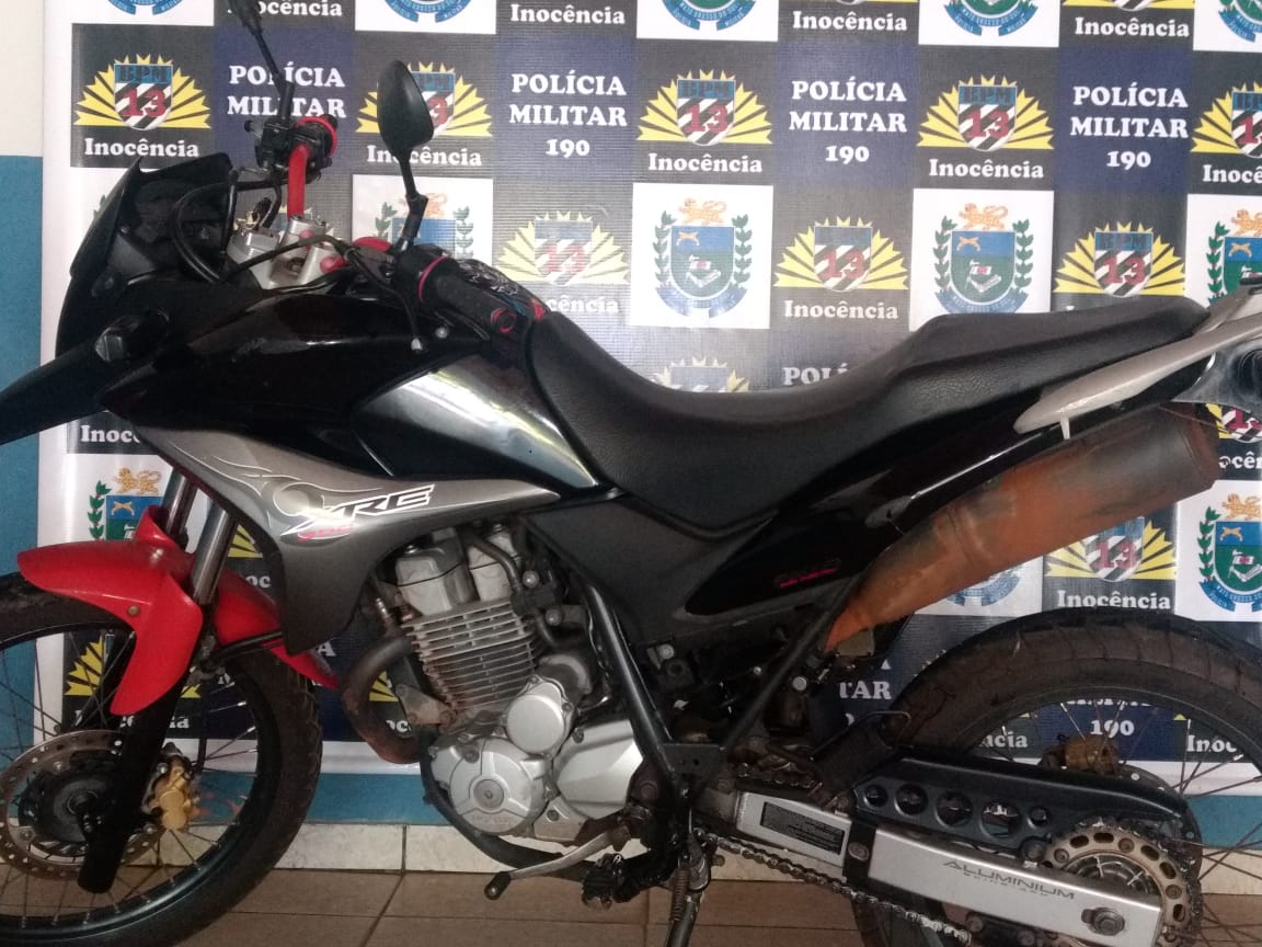 Inocência (MS) – Nesse domingo (26/05), à 01h15, policiais militares do 13º Batalhão de Polícia Militar apreenderam uma motocicleta que se encontrava com sinal identificador adulterado, em Inocência. Policiais militares da equipe de patrulha urbana