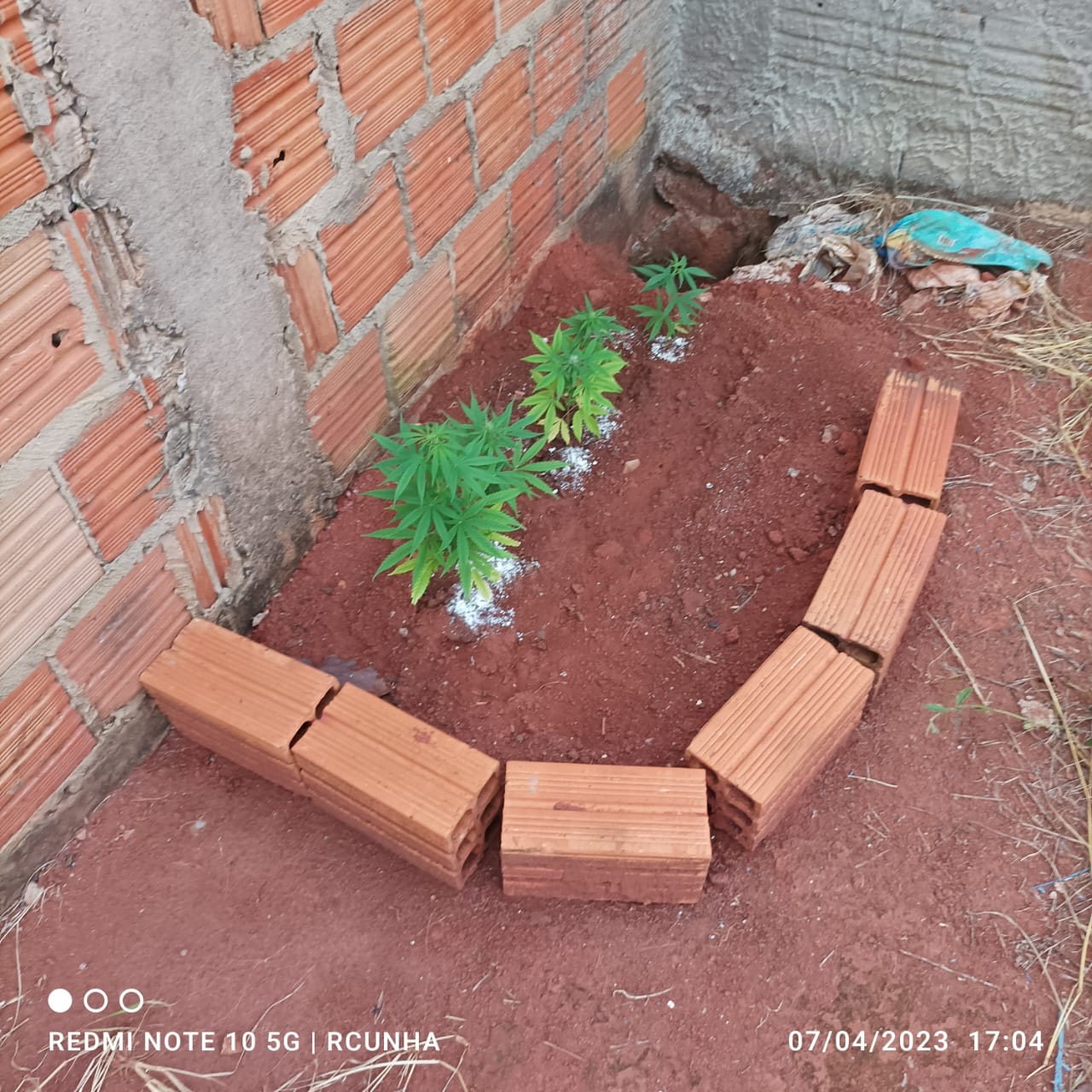 Chapadão do Sul (MS): Na sexta-feira (07.04.2023), a Polícia Militar de Chapadão do Sul foi informada de que havia uma plantação de maconha em uma residência. Por volta de 17h, os militares foram até o local informado e visualizaram a pequena