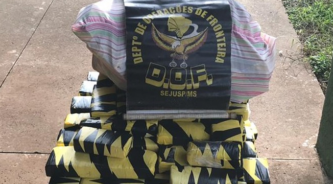 Tacuru, 21 de maio – Policiais do Departamento de Operações de Fronteira (DOF) apreenderam na manhã de hoje, um veículo GM Celta de cor prata carregado com vários volumes prensados de uma substância entorpecente, aparentemente maconha, com peso total