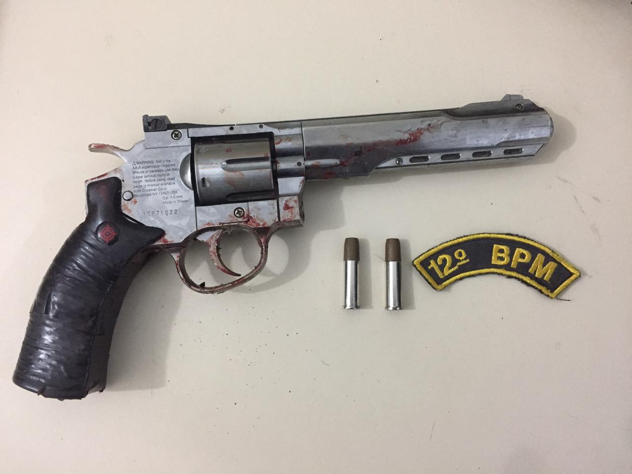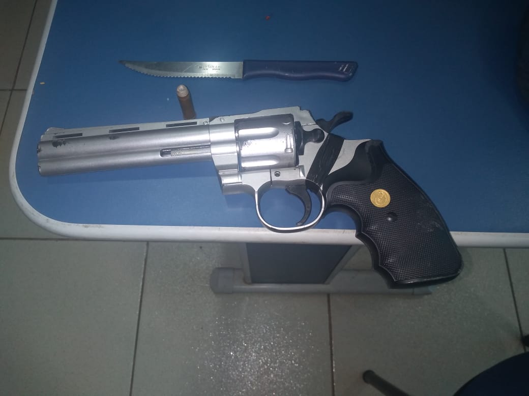 Três Lagoas (MS) – Na última sexta-feira (17), por volta de 12h40 uma guarnição da Radiopatrulha do 2° Batalhão de Polícia Militar apreendeu um simulacro de arma de fogo, uma munição calibre .38 e uma faca de 10 cm depois do atendimento de uma