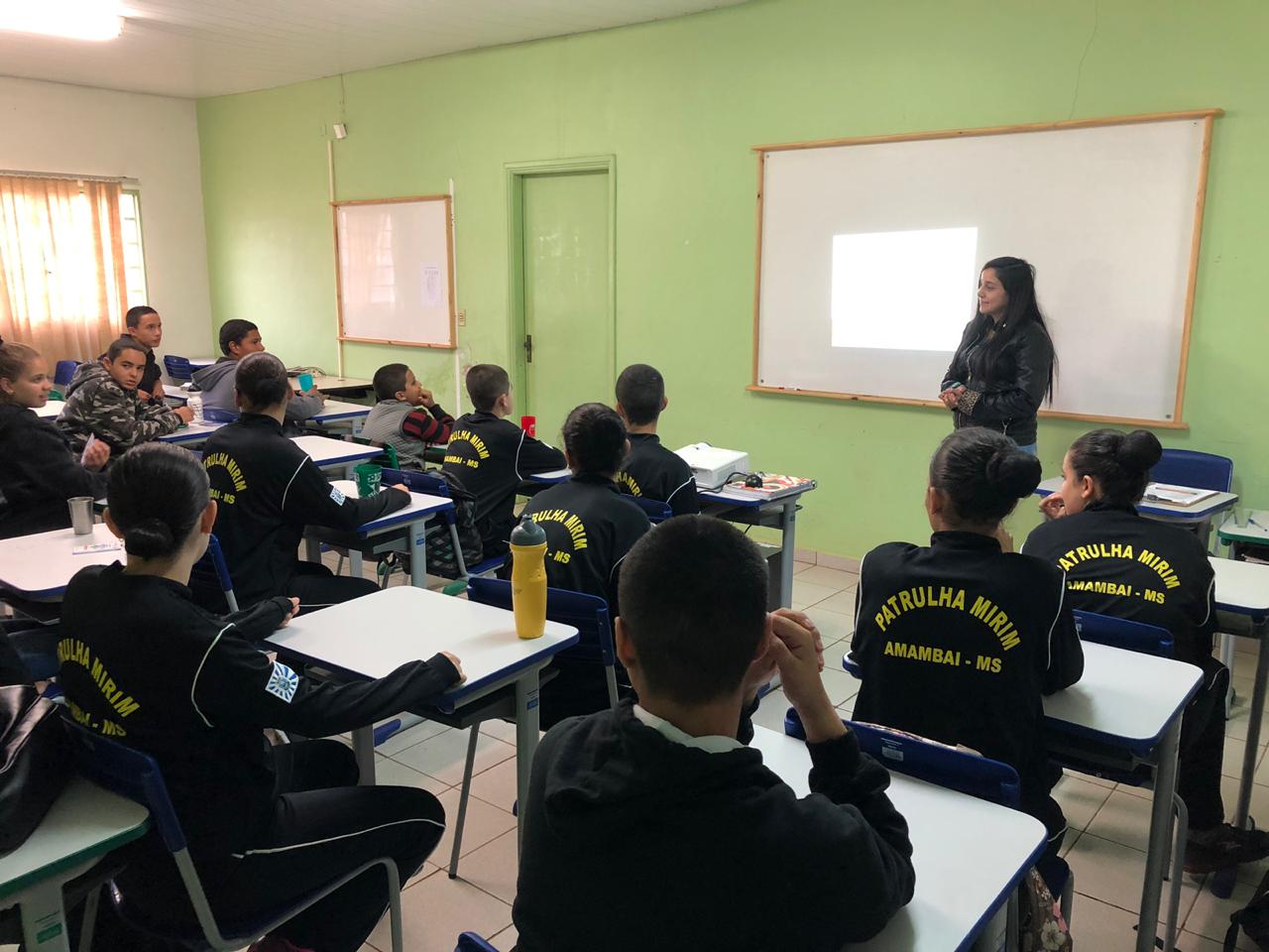 3ª CIPM Amambai (MS) – Nesta semana (13 a 17), alunos do Projeto Patrulha Mirim da Polícia Militar de Amambai tiveram aulas de diferentes temas com profissionais da corporação e servidores do município. Na terça-feira (14) a psicóloga Caroline de