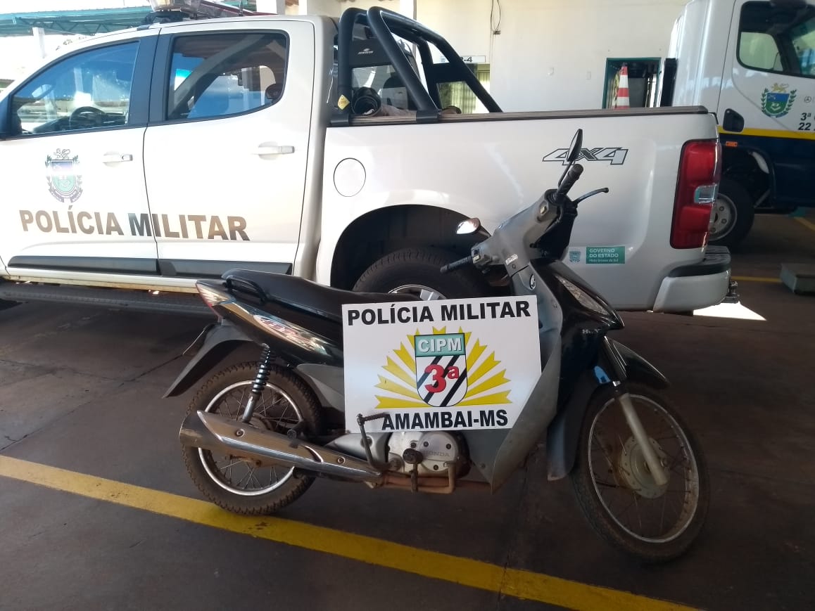 Na manhã desta terça-feira (14), uma equipe de Rádio Patrulha da Unidade Policial Militar de Amambai recuperou uma motoneta Honda Biz que havia sido furtada na madrugada. O proprietário da motoneta relatou que foi dormir, deixou a moto no quintal e