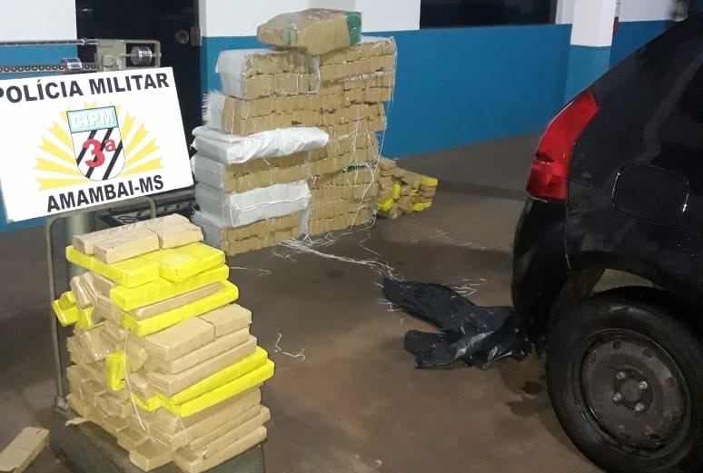 Amambai, 10 de maio – Policiais do Departamento de Operações de Fronteira (DOF) apreenderam na tarde de sexta-feira, um adolescente de 16 anos de idade que conduzia um veículo Fiat Palio vermelho carregado com 474 volumes prensados de uma substância