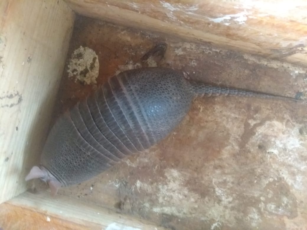 Campo Grande (MS) – Campo Grande (MS) – Policiais Militares Ambientais de Coxim foram acionados por um funcionário do hospital da CASSEMS na cidade hoje (3) no final da manhã, devido a um animal silvestre da espécie Dasypus novemcinctus