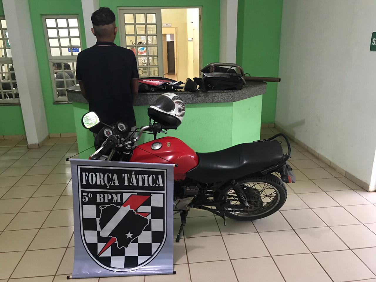 Coxim (MS) – A Polícia militar de Coxim na manhã de hoje (30/04) prendeu um jovem de 23 anos e recuperou motocicleta roubada. A Guarnição da Força Tática recebeu uma denúncia anônima informando que uma moto roubada no último dia 24/04 de um