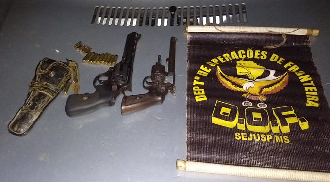 Jardim, 1º de maio – Policiais do Departamento de Operações de Fronteira (DOF) apreenderam na noite de quarta-feira, um revólver calibre .38, um revólver calibre .22, onze munições de calibre .38 intactas e nove munições de calibre .22 intactas. As